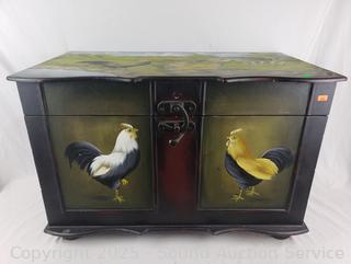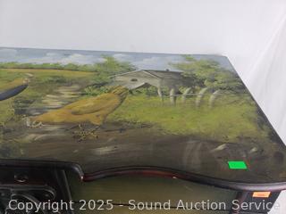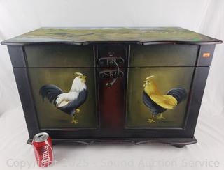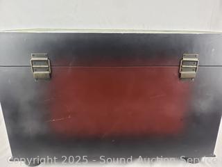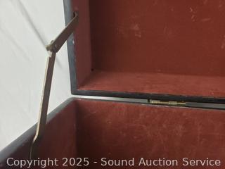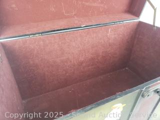 18" H x 27.5" W x 15.75" D. Interior could use a proper cleaning, a few minor knicks, dings.