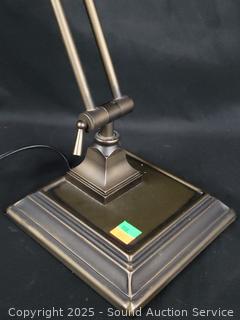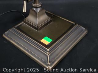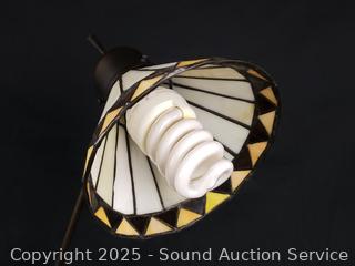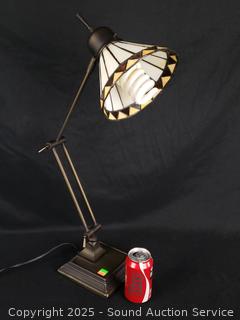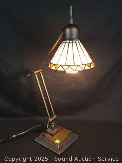 Lot #0108: Stained Glass Shade Bronze Finish Articulating Table Lamp
