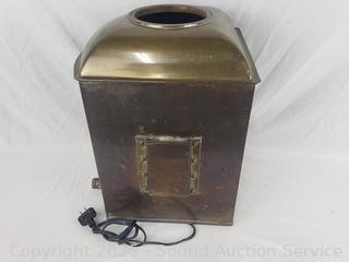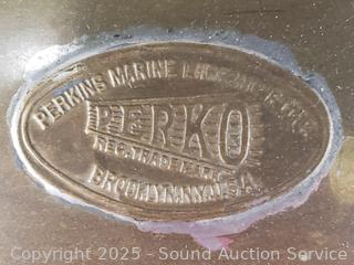 By Perkins Marine Lamps, been wired with a plug & a light. Light is loose on the inside, not currently working, may need a new bulb. 16.5" H x 10.5" x 10.5".