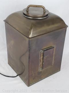 By Perkins Marine Lamps, been wired with a plug & a light. Light is loose on the inside, works. 16.5" H x 10.5" x 10.5".
