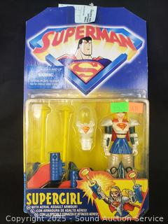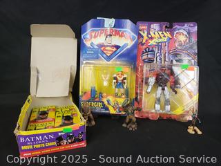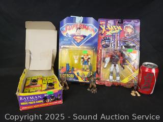 3 Star Wars figures, 1998 Super Girl Figure (Sealed), 1995 X-Men Commando Figure (Sealed), 11 Sealed 1991 Batman trading card packs. Refer to photos for more details.