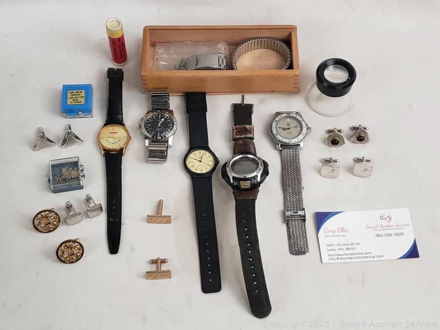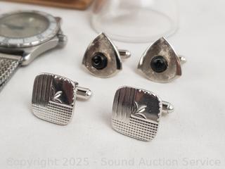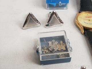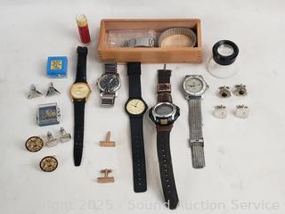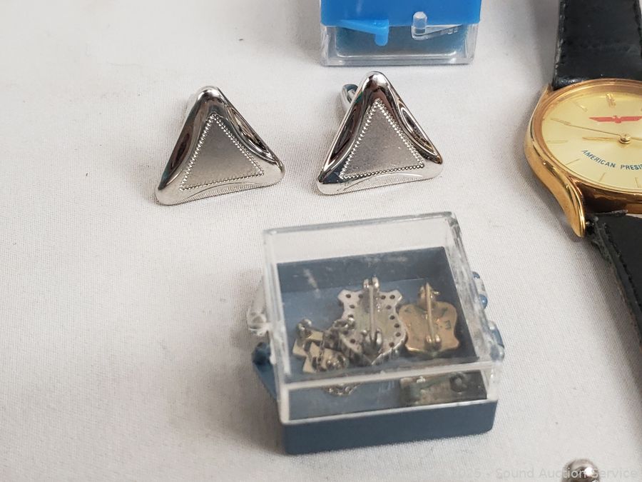 Lot #0129: 5 Watches, Cufflinks, Pins
