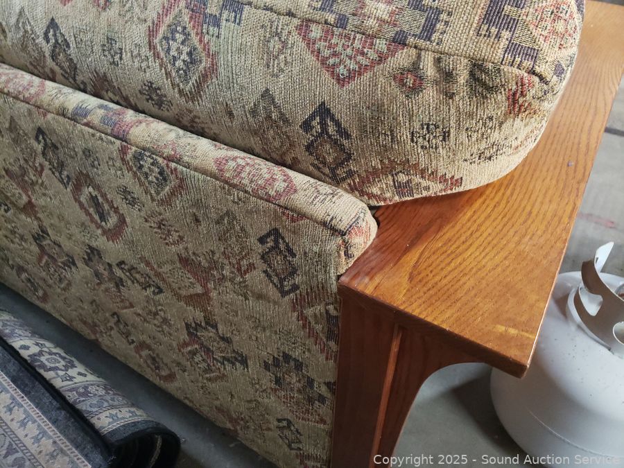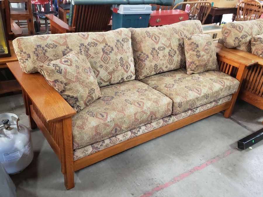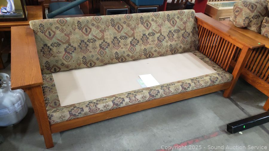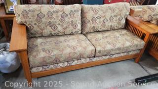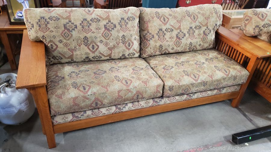 Lot #0003: Bassett Mission Style Oak Sofa