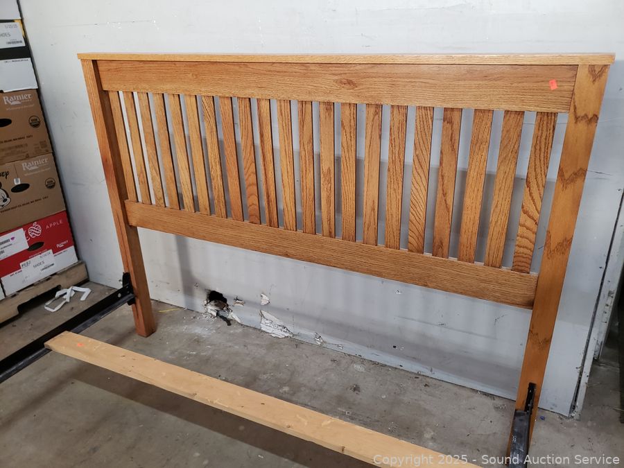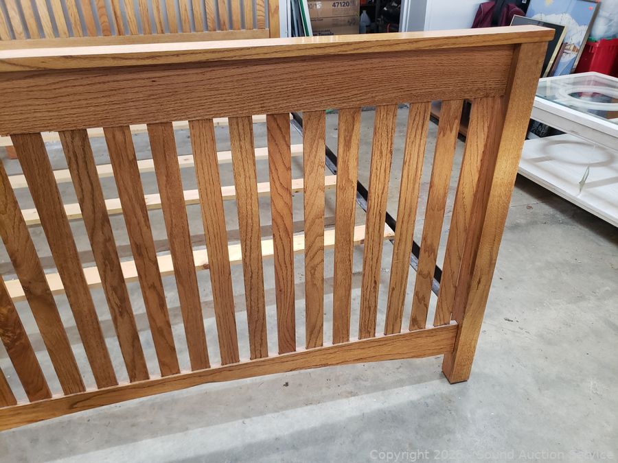 Lot #0005: Mission Style Oak Queen Bed Frame