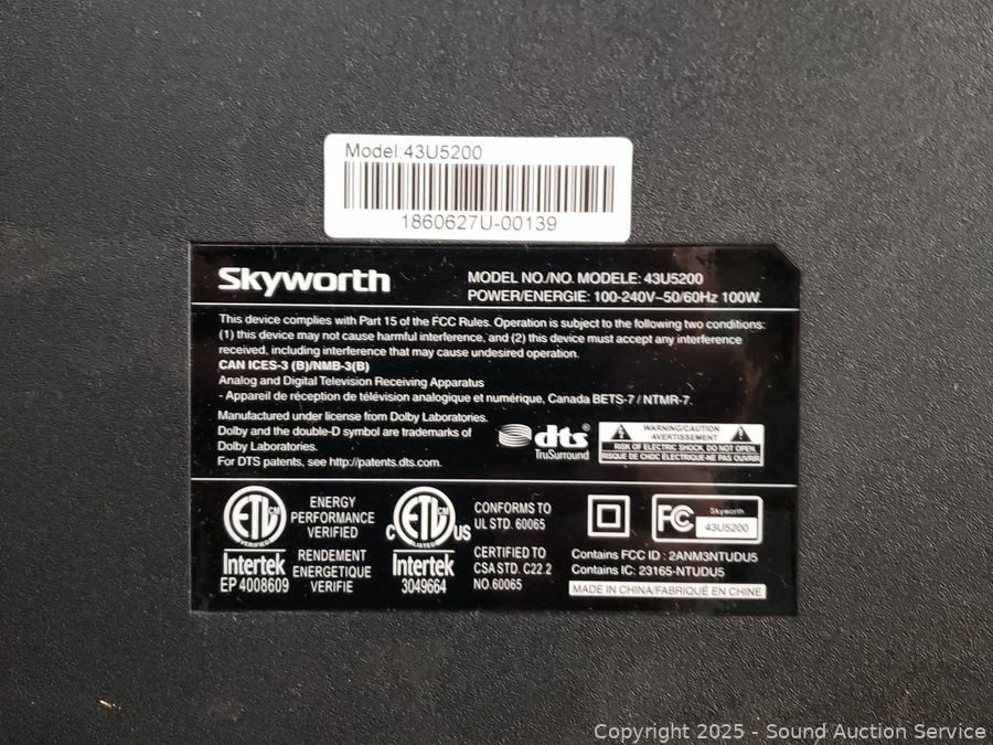 Lot #0017: Skyworth 43" 4K UHD Smart TV w/Remote