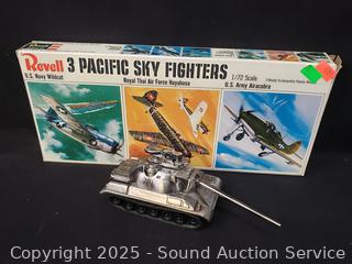 Lot #0206: Tank Table Lighter & 3pk Revell Pacific Fighters Model Kit