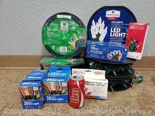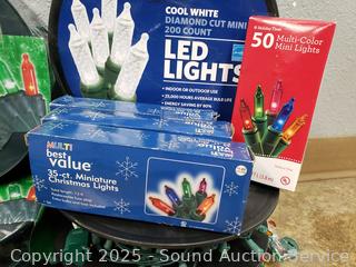 20 & 35ct mini-lights, 200 & 300 light sets. Refer to photos for lot contents, more details. Untested.