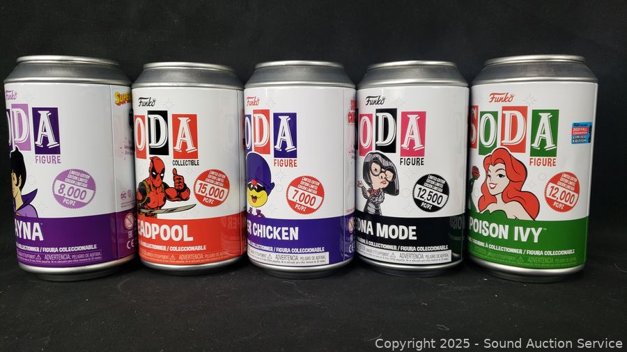 Lot #0249: 5 Funko Marvel & DC Collectible Soda Figures
