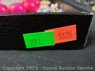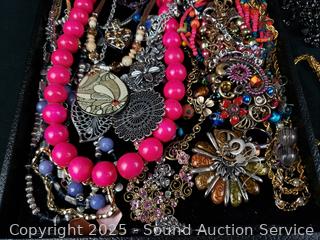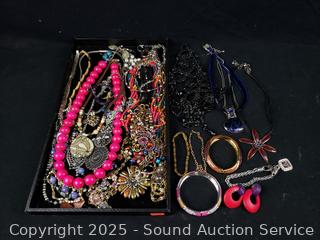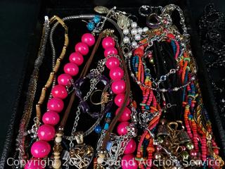 Necklaces, bracelets, earrings, etc. Jewelry tray is NOT included.