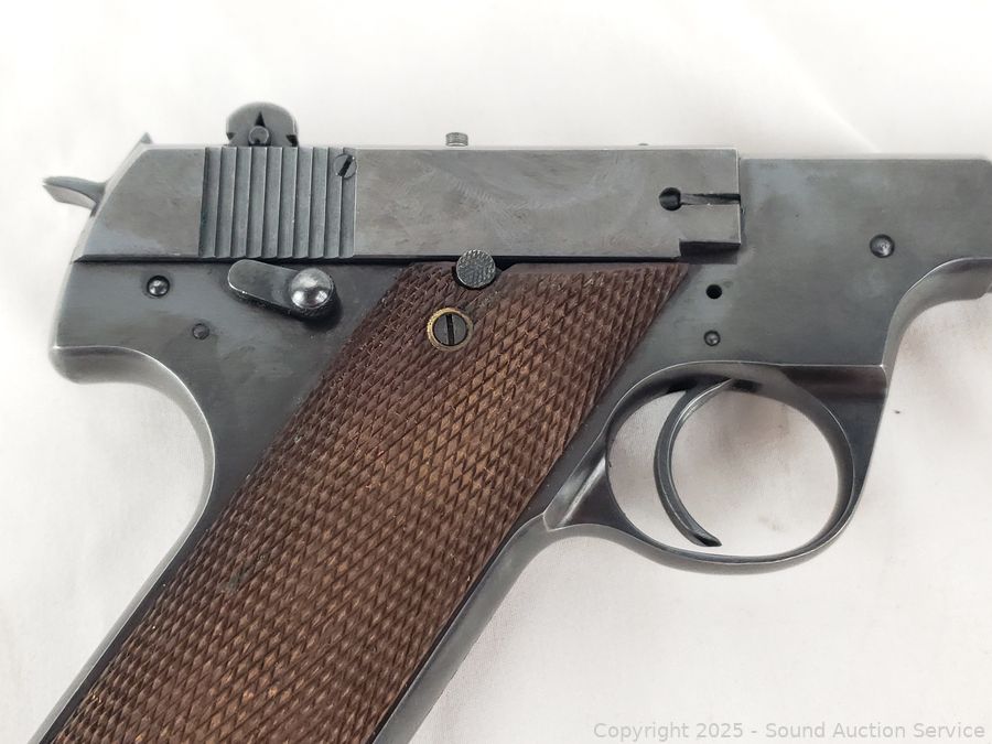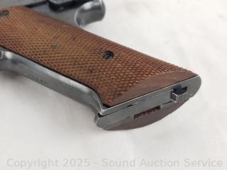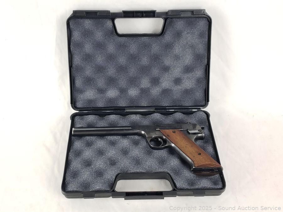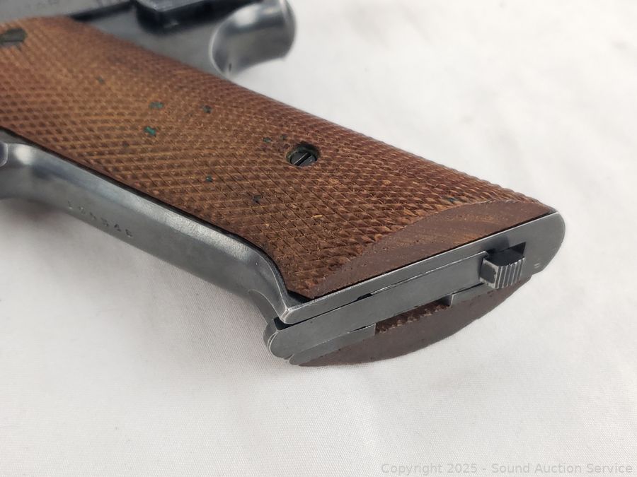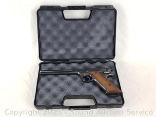 Made in USA. Serial195348. In great cosmetic condition. Appears to be in firing condition. Very clean, smooth action. Comes with magazine. 10.5" length, 5.25" barrel. 12" x 8.5" x 2.5" Doskocil insulated hardcase.