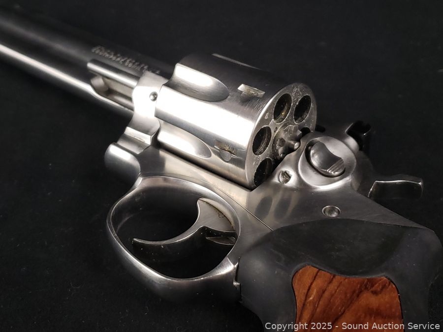 Made in Conn. USA. Serial 173-82977. In excellent cosmetic condition. Very clean, smooth action. Appears to be functioning as intended. 11" length, 5-3/8" barrel. Rubber & wood grain grip. Comes with some paperwork.