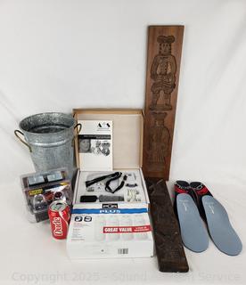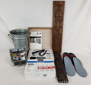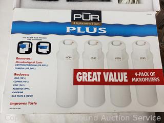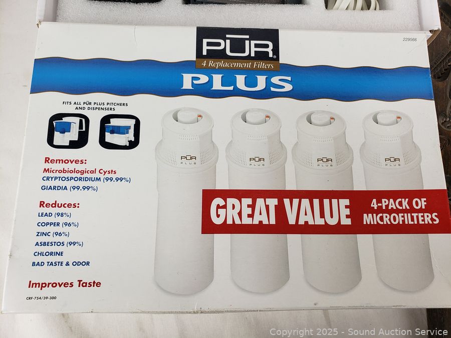 Personal Emergency Response System w/2-Way Voice, 4 Pur Water Filters, set of 6 chrome stake pocket anchors, 2 wood carvings, galvanized pail, etc. Refer to photos for lot contents, more details.