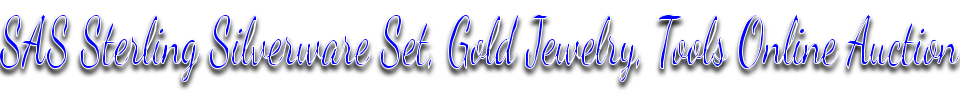 10/31/25 SAS Sterling Silverware Set, Gold Jewelry, Tools Online Auction BIDDING NOW! Lots Start Closing 5:30 PM Tues. Oct. 14th. Preview: Online or in person Tues - Sat, 9:AM-5:30PM, must know what auction, lot numbers & items you would like to preview. Payment Methods: Credit Cards on file will be run after the close of the auction. Buyer's Premium: 20% Shipping: Sound Auction Service will provide shipping on most smaller items with appropriate handling charge. We will use USPS Flat Rate, FedEx Home Delivery or Media Mail. Fragile items, including framed art, china, porcelain or glass, should be consulted prior to purchase. Most larger items and fragile items can be handled by Pack & Ship in Lacey, WA upon request, Phone: 360-923-9551. Credit cards on file will be billed for shipping and handling. Tracking information will be emailed to the email on file. To obtain shipping you must email your request to cory@soundauctionservice.com, click on the “Contact Us” tab or reply to invoice email. Delivery: Can be arranged through American Moving Company. Contact Neil Radford at Phone: 206-747-3611, Website: AmericanMovingCompany.net. Freight: Large items can be shipped through Sweetwater Transport LLC. Phone: 360-233-2100. Removal: Please check in at main building first when picking up your items. All items will be brought to you at the door. Pick up times for this auction are Wed. 10/15, Thur. 10/16, Fri. 10/17, Sat. 10/18, 9:AM-5:30PM. Always closed Sundays & Mondays. All items must be removed no later than 5:30 pm (PT) on Sat. 10/18. All items that are not picked up during allotted pick-up period will be forfeited!!! |